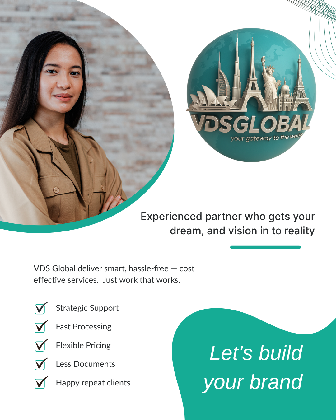 At VDS Global, we provide expert visa and immigration services in Dubai and across the UAE. From tourist and employment visas to family sponsorships, golden visas, and residency permits, our team ensures a smooth and hassle-free process. With in-depth knowledge of UAE regulations, we help individuals, families, and businesses handle all documentation, approvals, and renewals with speed and accuracy. Whether you are relocating, hiring, or expanding, we make your visa journey in Dubai simple, reliable, and stress-free